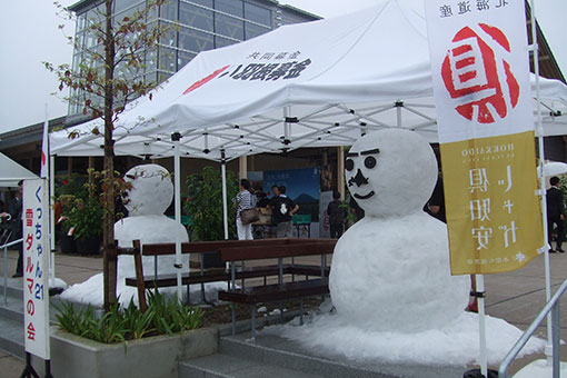 豪雪のまち・倶知安町を知ってもらうための活動として、平成2年から東京銀座や札幌、東北各地で倶知安の雪を使った雪だるまを造設する取り組みを行っています。