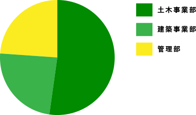 土木事業部が一番多く、建築事業部・管理部は同数です。