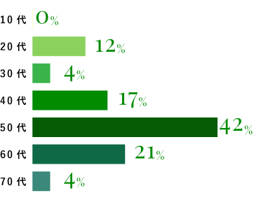 50代が一番多く、60代40代と続きます。