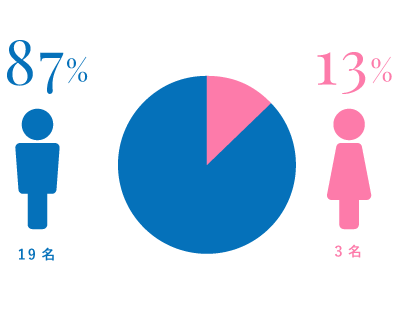 男性が9割と男性が多い会社です。